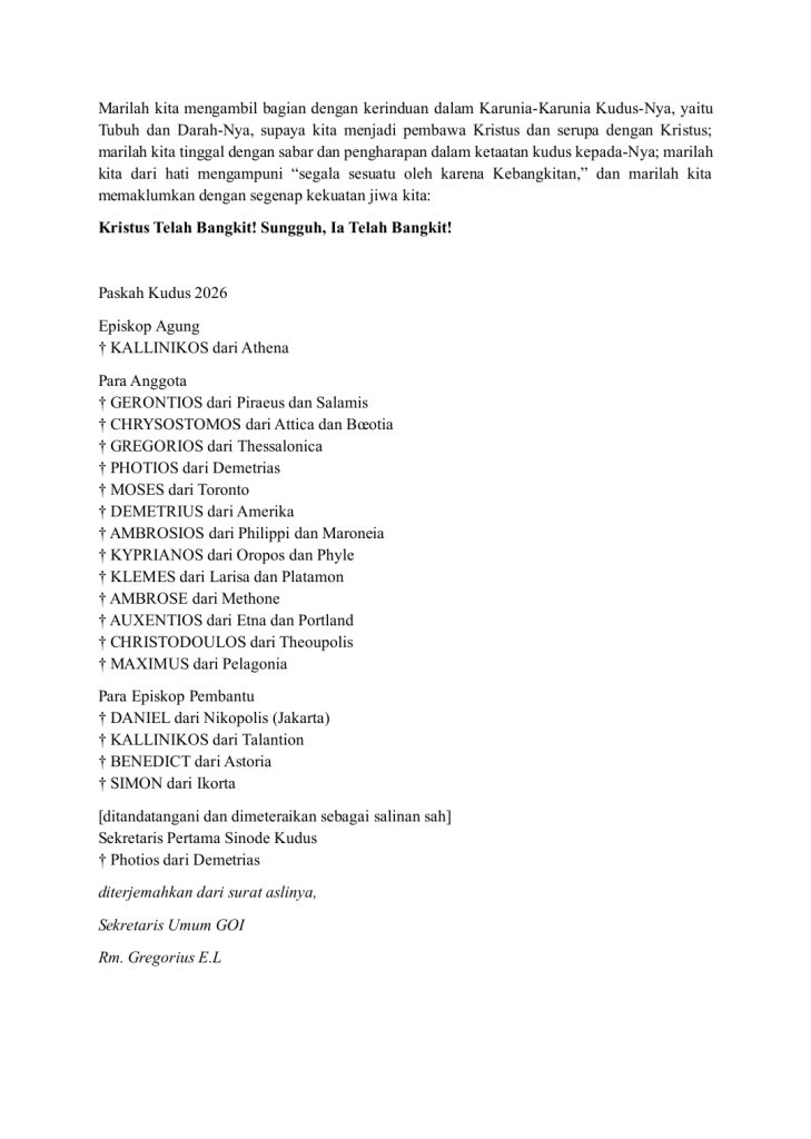 Suara dari Yunani untuk saudara-saudara di Indonesia dan di seluruh Asia Saudara-saudaraku terkasih didalam Kristus,…